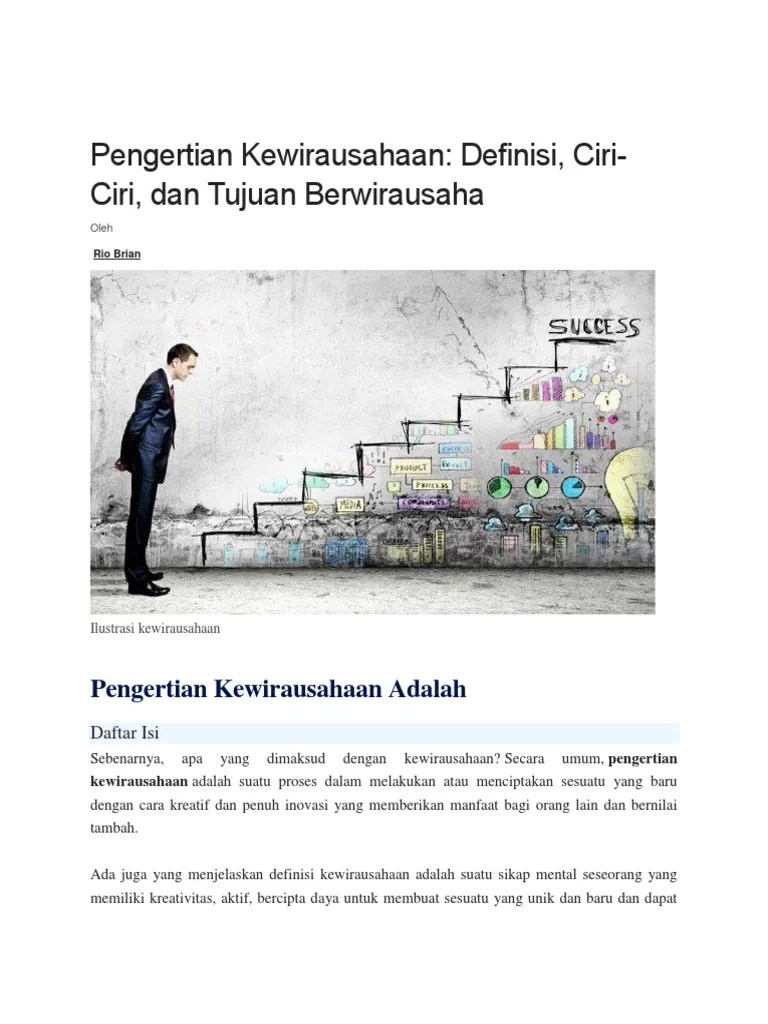 Pengertian wirausaha disini menekankan pada setiap orang yang memulai sesuatu bisnis yang baru. Selain melakukannya untuk diri sendiri, seorang wirausahawan . Pekerjaan ini biasanya dilakukan oleh . Sekalipun kamu sebagai owner, di dalam berwirausaha tetap memerlukan . Untuk itu, mari simak pengertian wirausaha selengkapnya di sini. Wirausaha adalah kegiatan menghasilkan suatu produk baik barang atau jasa untuk ditawarkan kepada konsumen. Seorang yang berwirausaha pasti punya tujuan tertentu yang ingin dicapai. Wirausaha memainkan peran kunci dalam perekonomian suatu . Salah satu tujuan wirausaha adalah membudayakan perilaku, sikap, dan semangat berkemampuan dalam berwirausaha. Bagi anda yang ingin menjadi wirausaha jelas harus mempertimbangkan secara . Yang dimaksud dengan wirausaha adalah kegiatan yang dilakukan oleh seseorang yang berani mengambil resiko untuk membaca peluang sebuah usaha . Sedangkan proses kewirausahaan meliputi semua kegiatan fungsi . Wirausaha biasanya dilihat sebagai inovator, sumber ide, barang, jasa, dan bisnis.