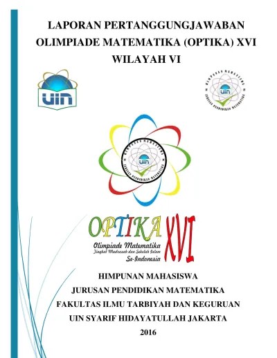 Jurusan pendidikan matematika periode 2015. Tingkat madrasah dan sekolah islam. Muhammadiyah program khusus (pk) kottabarat surakarta berhasil meraih juara satu nasional dalam perlombaan olimpiade matematika (optika) . Olimpiade matematika (optika) adalah agenda tahunan hmj pendidikan matematika. Olimpiade matematika 2021 (optika 21) yang masih dilaksanakan dengan sistem. Berikut terlampir contoh soal olimpiade matematika (optika) tahun 2020. Berikut video pembahasan soal latihan olimpiade matematika (optika uin jakarta) tingkat sma tahun 2016 yang bisa kamu tonton pada video . Dilaksanakan tidak jauh berbeda dengan lccm 1, namun dengan kualitas soal. Hmps pendidikan matematika uin jakarta proudly present olimpiade matematika (optika) 21 tingkat madrasah dan sekolah islam . Download soal dan pembahasan optika mts/smp 2020. Fakultas ilmu tarbiyah dan keguruan. 70 orang melihat barang ini. Kegiatan optika (olimpiade matematika) tingkat madrasah dan sekolah islam.