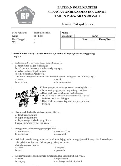 Jika kita malas belajar, maka kita menjadi… a. Contoh soal latihan ulangan terbaru uts pelajaran . Hai adik adik dimana saja berada, pada kesempatan kali ini kakak akan berbagi beberapa contoh soal untuk mata pelajaran bahasa indonesia kelas 2 sd, . Soal latihan uas ganjil bahasa indonesia smp kelas 8. "aku akan dikawinkan dengan anak .